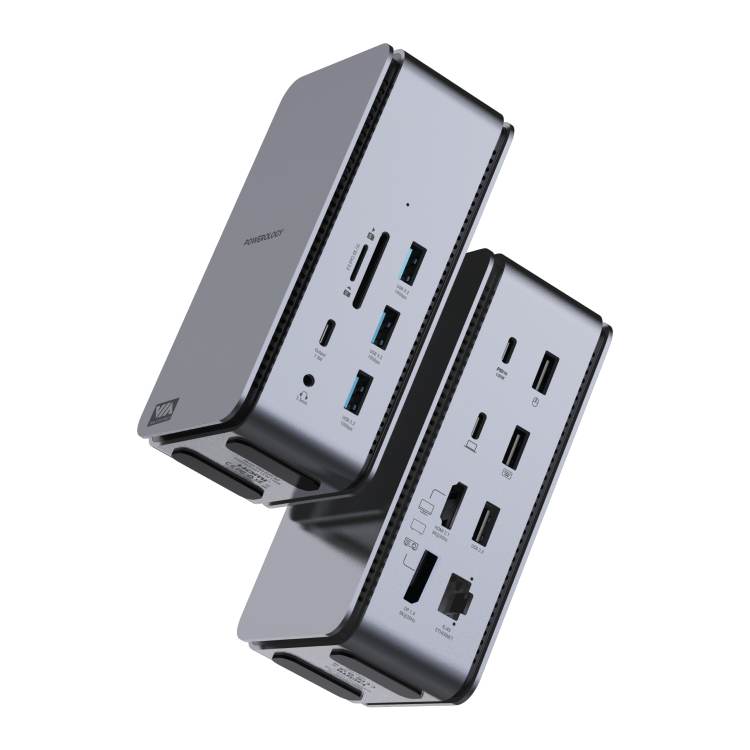 - باورولوجي محطة توصيل مزدوجة 15 في 1, شحن سريع بقدرة 100 واط - رمادي | Powerology 15 in 1 Dual Dock Station PD 100W - Grey
