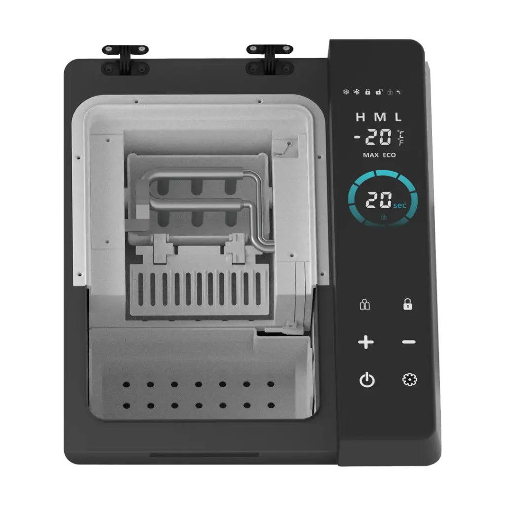 الميزة الأبرز هي صانعة الثلج المدمجة التي تنتج 6 مكعبات ثلج كل 8–9 دقائق لتمنحك تجربة انتعاش فورية.
