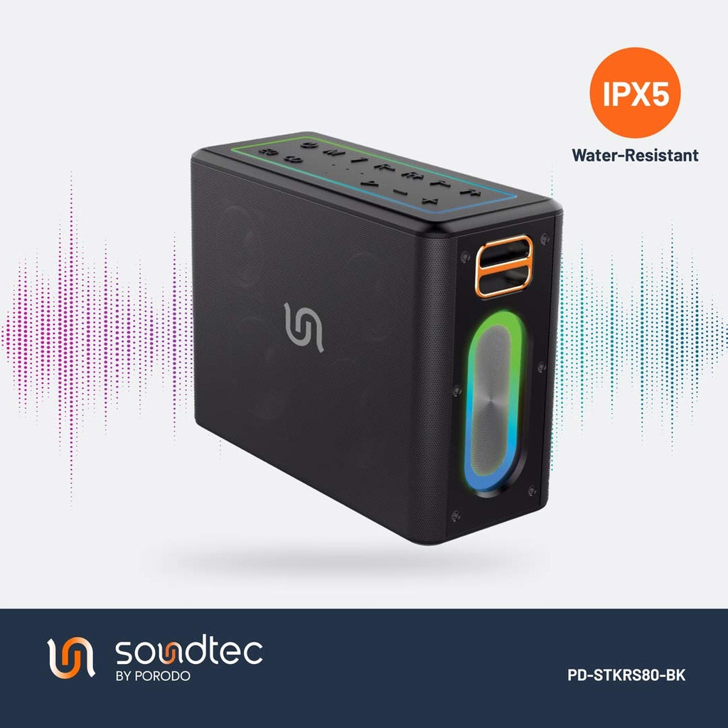 - استمتع بتجربة صوتية غامرة مع سماعة بورودو ساوندتك QUANTUM بقناة 2.2 المحمولة. بفضل قدرة إخراج تصل إلى 80 واط RMS (100 واط كحد أقصى)، تمنحك هذه السماعة صوتًا قويًا بجهير عميق ووضوح مذهل. مزودة بإضاءة RGB LED لتضيف أجواءً مميزة أثناء الحفلات أو جلسات الاستماع.