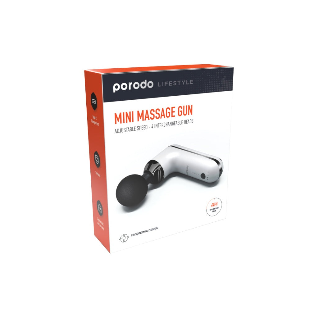 - بورودو لايف ستايل مسدس تدليك صغير 12 فولت بسرعات متعددة وبطارية بسعة 2000 مللي امبير - ابيض | Porodo Lifestyle 12V Varying Speed Mini Massage Gun With USB-C Port 2000mAh - White.