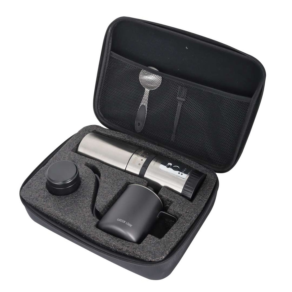 يعد صانع القهوة المحمول Green Lion جهازًا أساسيًا لعشاق القهوة الذين يحبون الاستمتاع بمشروبهم المفضل في أي مكان. يتميز هذا الجهاز الأنيق والصغير بالحجم بإمكانية تحضير قهوة طازجة في أي وقت، حتى خارج المنزل.