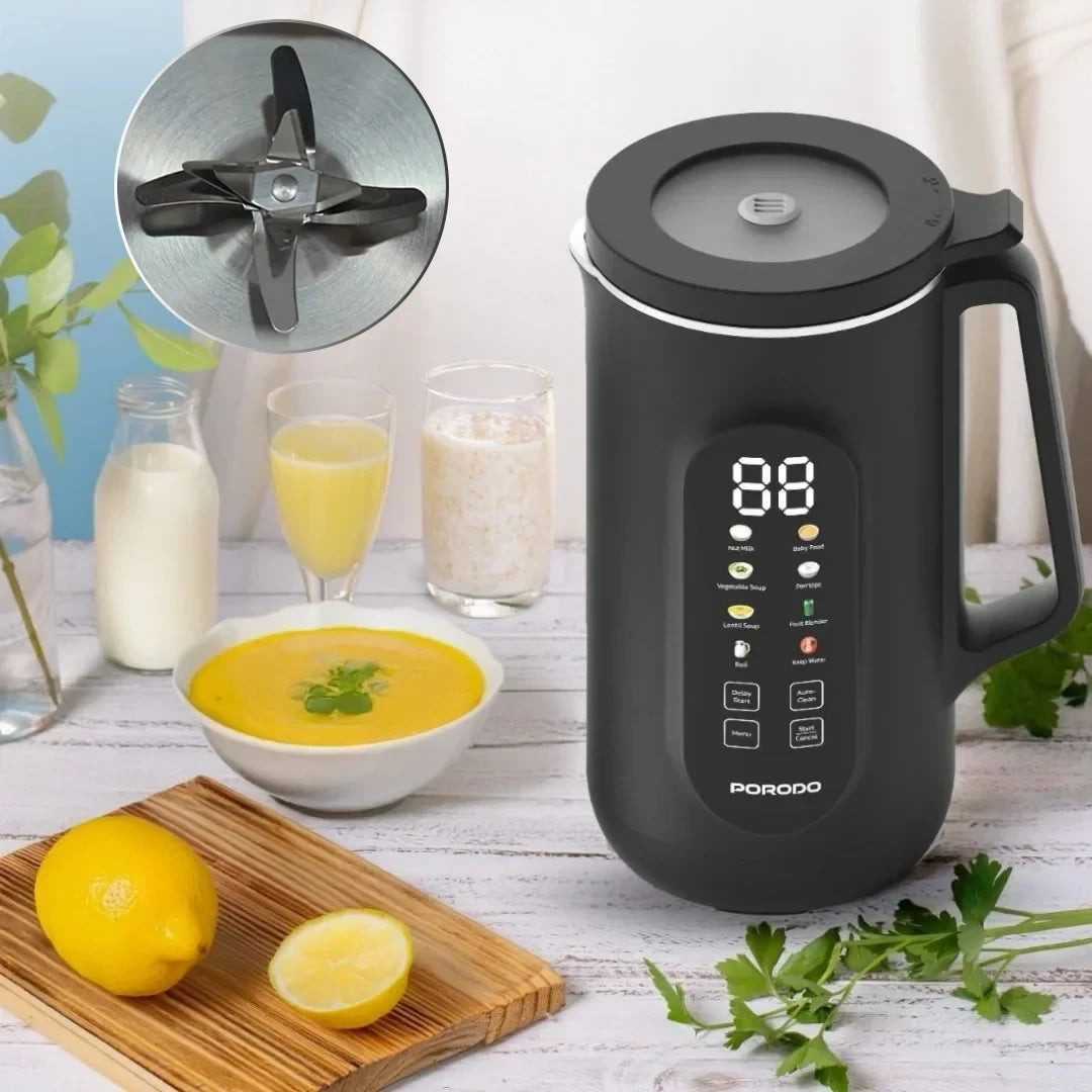 - احصل على مشروباتك ووجباتك الصحية الطازجة بسهولة مع جهاز بورودو لايف ستايل لصناعة المشروبات الساخنة والباردة. يتميز بقدرة تسخين قوية 800 واط مع قدرة خلط 200 واط، ما يجعله مثالياً لتحضير الحليب النباتي، العصائر، أطعمة الأطفال، الشوربات، العصائد والمزيد بسرعة وكفاءة.