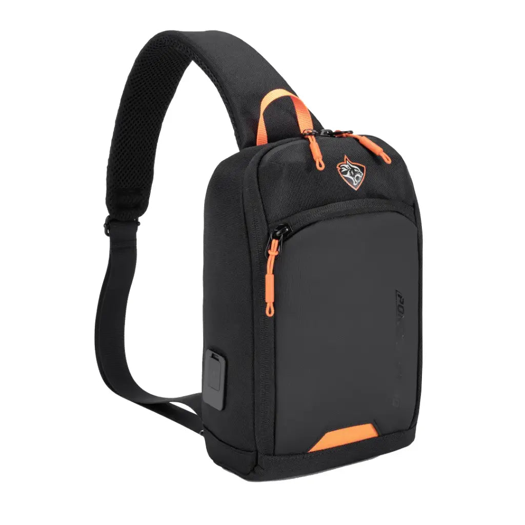 - حقيبة كتف جيمنج من بورودو, مقاومة للماء مع منفذ شحن يو اس بي سي بقدرة 40 واط - اسود | Porodo Gaming Water-Resistant PU Side Bag with USB-C PD 40W Port – Black.