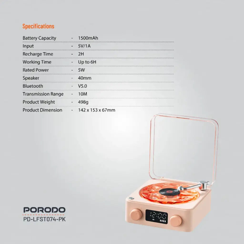 سبيكر بورودو لايف ستايل ويف, سبيكر بلوتوث باصوات وايت نويز, بطارية بسعة 1500 مللي امبير | Porodo Lifestyle Wave White Noise Bluetooth Speaker 1500mAh