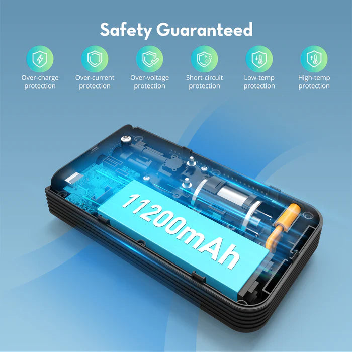 - شاحن بطارية سيارة 12000 الف ملي امبير قدرة 800 امبير مع لايت عملاق ومنافذ شحن - RAVPower Jump Starter With Air Compressor 12000mAh
