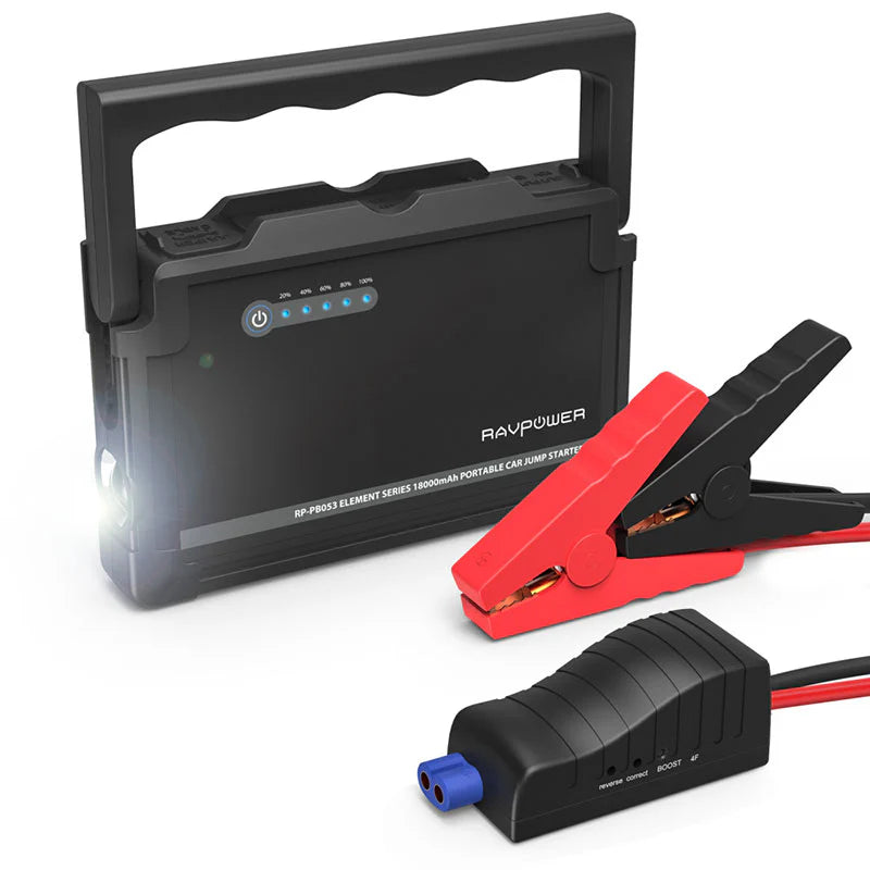 - شاحن بطارية سيارة 18000ملي أمبير قدرة 600 أمبير مع لايت عملاق ومنافذ شحن من راف باور - RAVPower Car Jump Starter 18000mAh 600A Peak Current Element