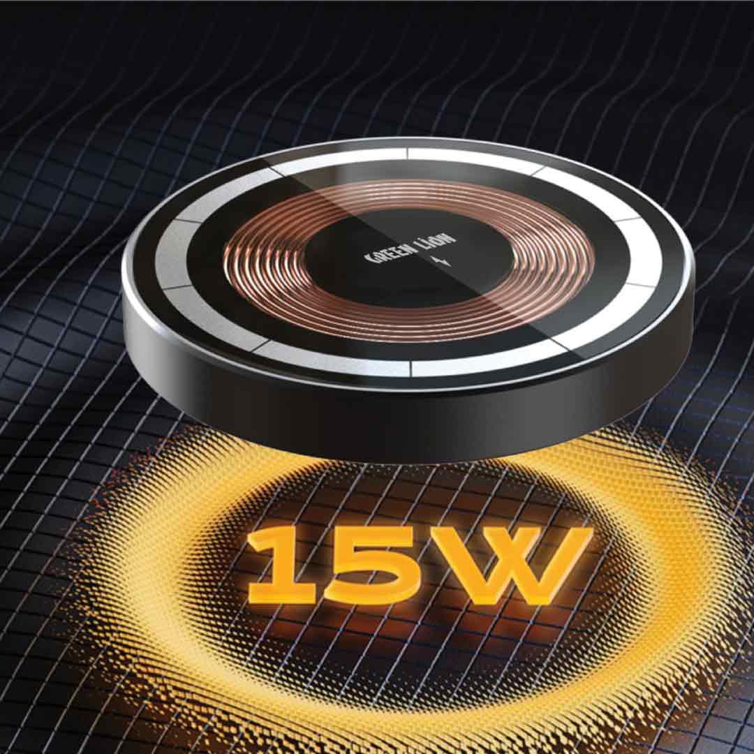 يدعم الشاحن قدرة خرج تصل إلى 15 واط لتوفير شحن سريع وآمن لهاتفك، مع توافق ذكي مع معايير 5W / 7.5W / 10W / 15W لضمان الأداء المثالي لجميع الأجهزة المتوافقة.
