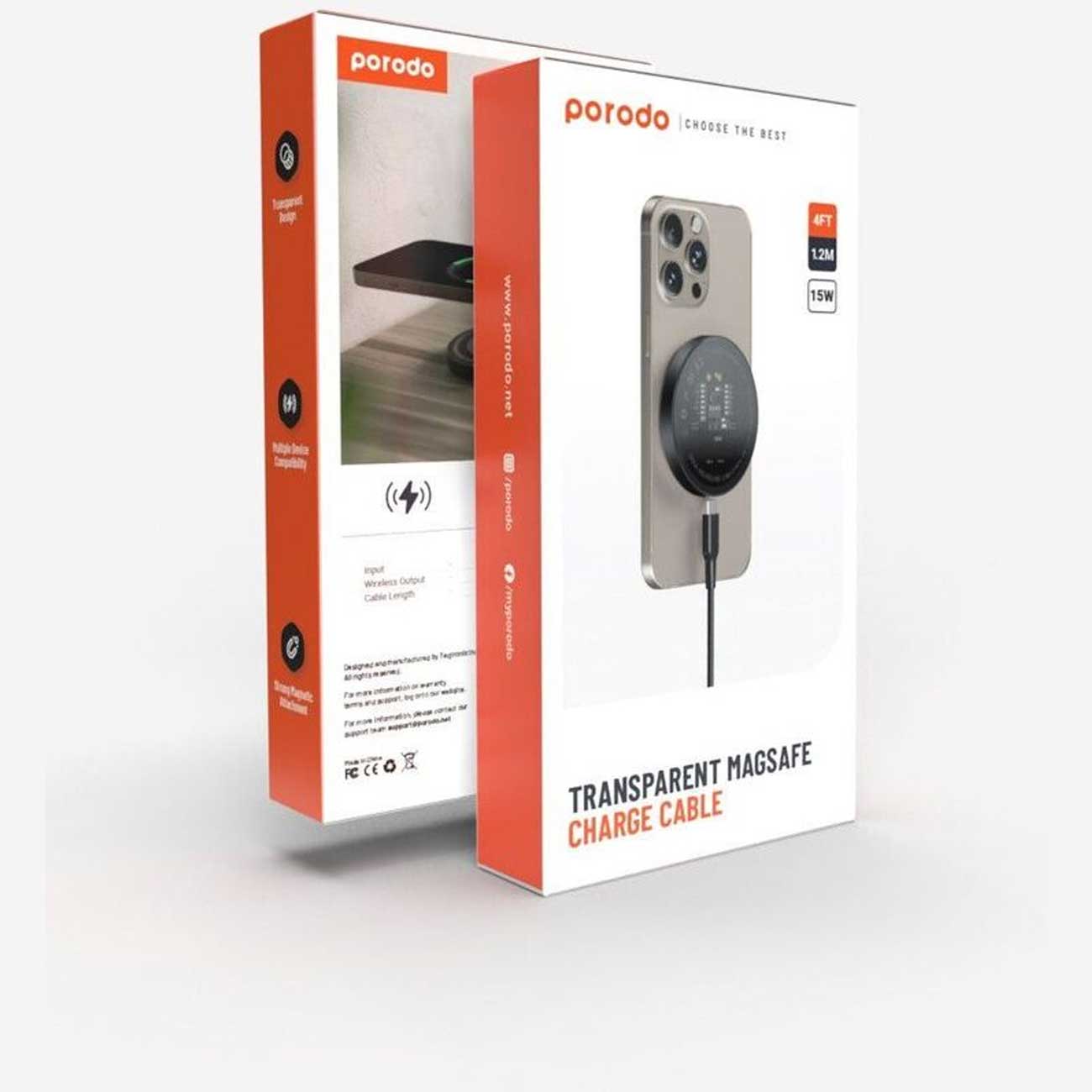 - شاحن ماغسيف بورودو اللاسلكي مع كيبل TPU بطول 1.2 متر - اسود | Porodo MagSafe Wireless Charger with 1.2M TPU Cable – Black