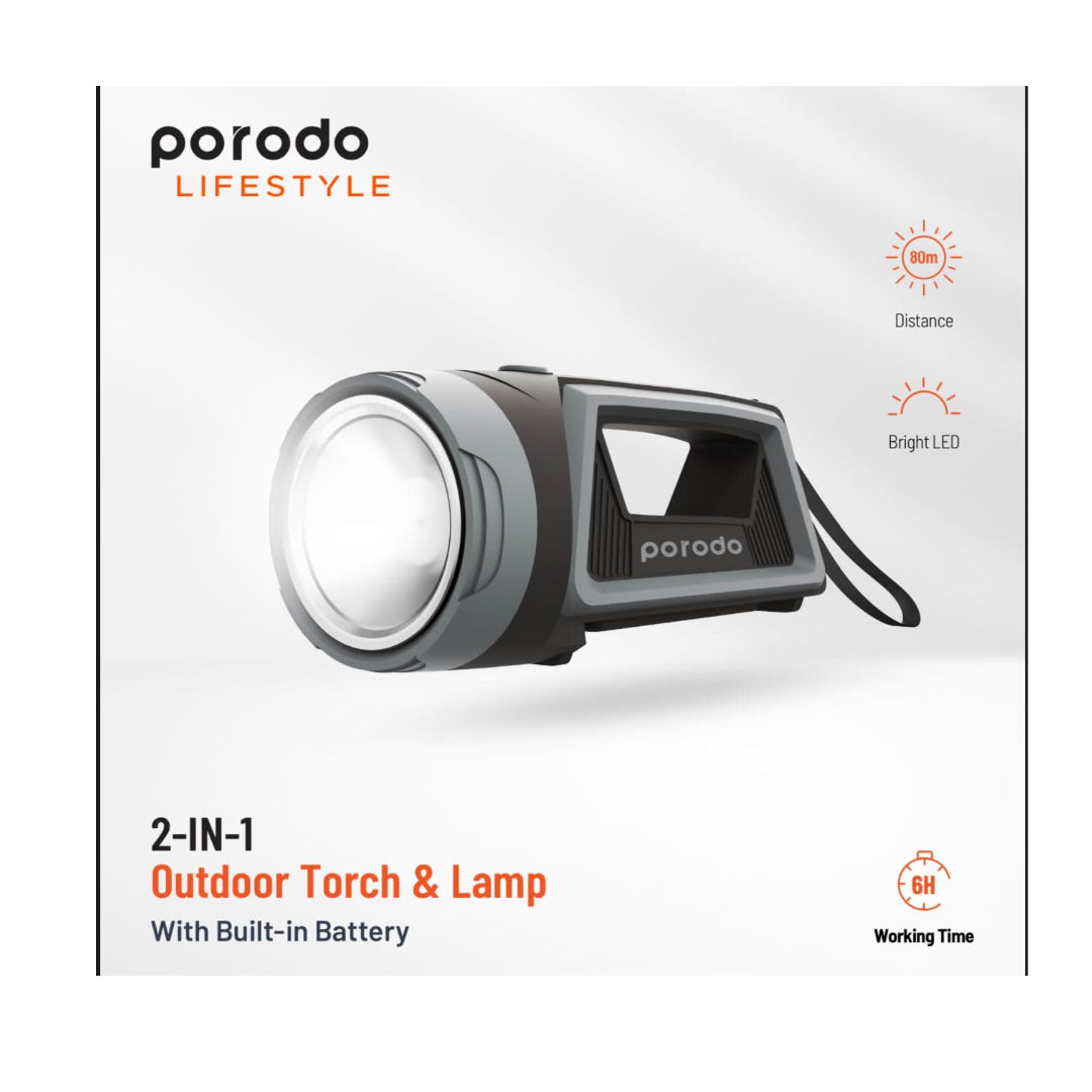 - كشاف ومصباح خارجي 2 في 1 من بورودو لايف ستايل ببطارية مدمجة 3 واط, اضائة بقدرة 380 لومن | Porodo Lifestyle 2-in-1 Outdoor Torch & Lamp with Built-In Battery 3W COB 380LM.