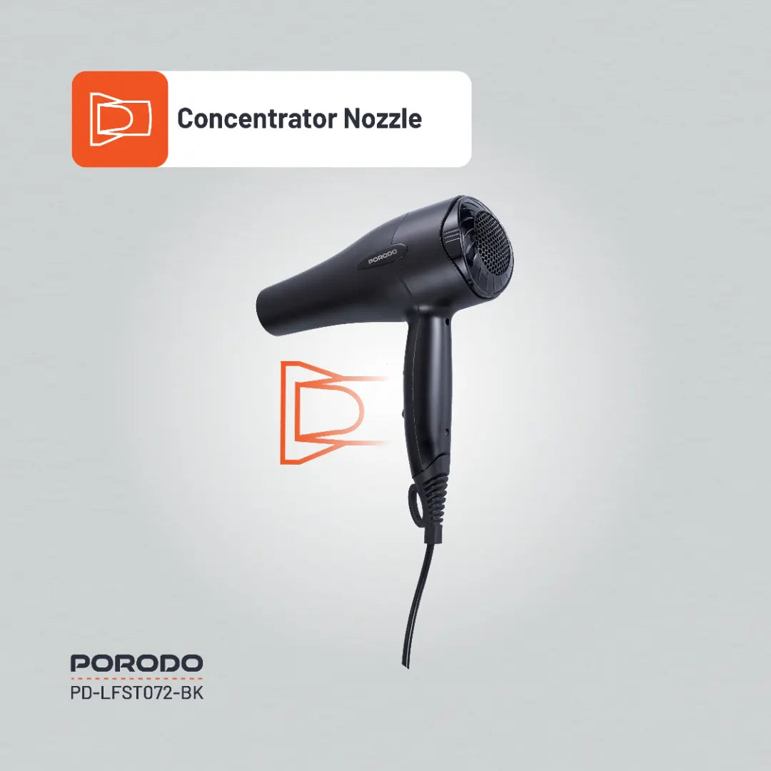 - مجفف شعر بورودو لايف ستايل 1200 واط بكيبل طول 1.8 متر | Porodo Lifestyle 1200W Hair Dryer 1.8M Cable.