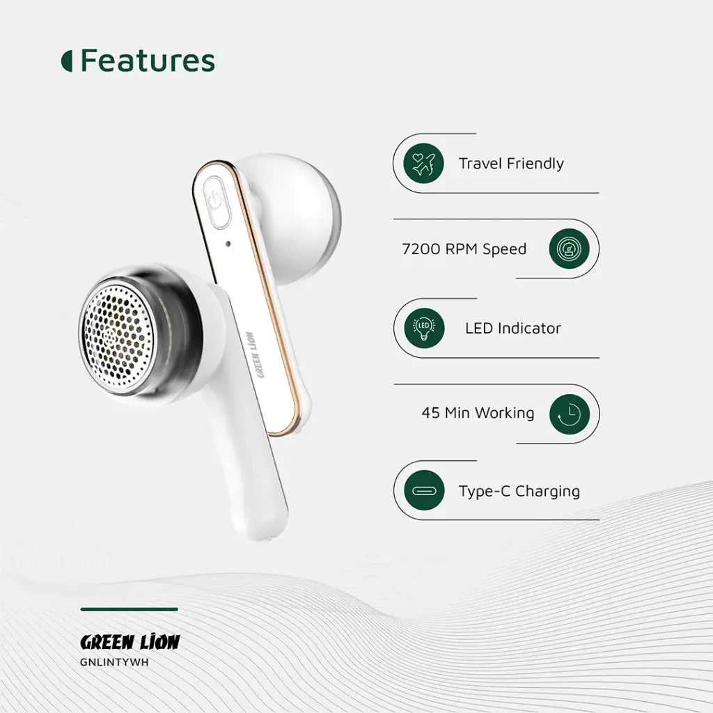 - مزيل الوبر للملابس من جرين لايون, متعدد الوضائف, وقت تشغيل 45 دقيقة - ابيض | Green Lion Lint Y Multi-Function Lint Remover, 45min Working Time - White.