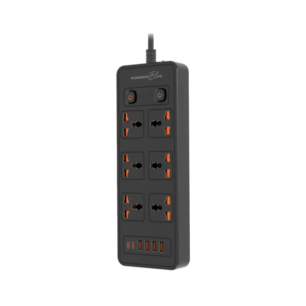 - وصلة كهربائية بورودو بلو ب 6 منافذ AC و 2 منافذ تايب سي و 4 منافذ تايب اي, كيبل بطول 3 متر | Porodo Blue 6 AC Power Socket With X2 USB-C X4 USB-A, 3M wire - Black