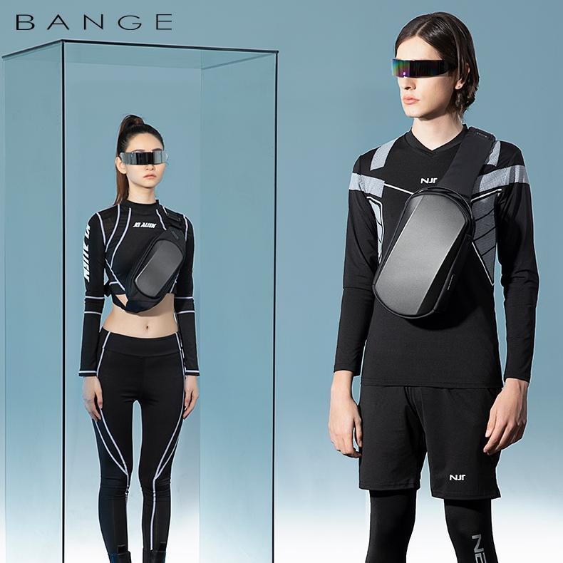 - BANGE Men Chest Bag Waterproof EVA Hard Shell Messenger Bag - Gray | حقيبة كتف رجالية من بانجي, مقاومة للماء بهيكل خارجي صلب - رمادي