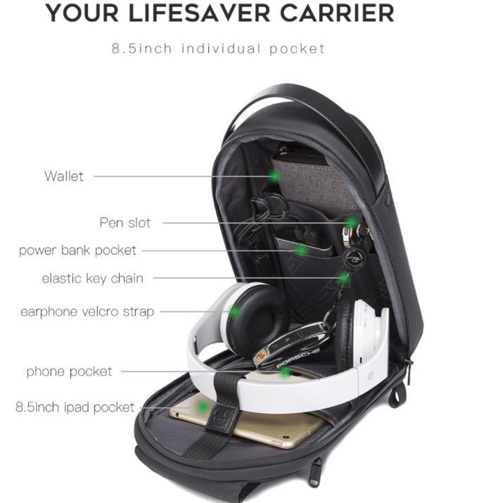 - شنطة الكتف الرجالية من BANGE موديل BG-7256 هي الخيار المثالي للراغبين في الأناقة والمتانة. مصنوعة من خامات عالية الكثافة ومزودة بهيكل خارجي صلب من EVA، توفر الحماية الكاملة لمحتوياتك أثناء التنقل. تصميمها الذكي يسمح بتنظيم الأغراض بسهولة، مع منفذ USB مدمج لشحن أجهزتك في أي وقت.