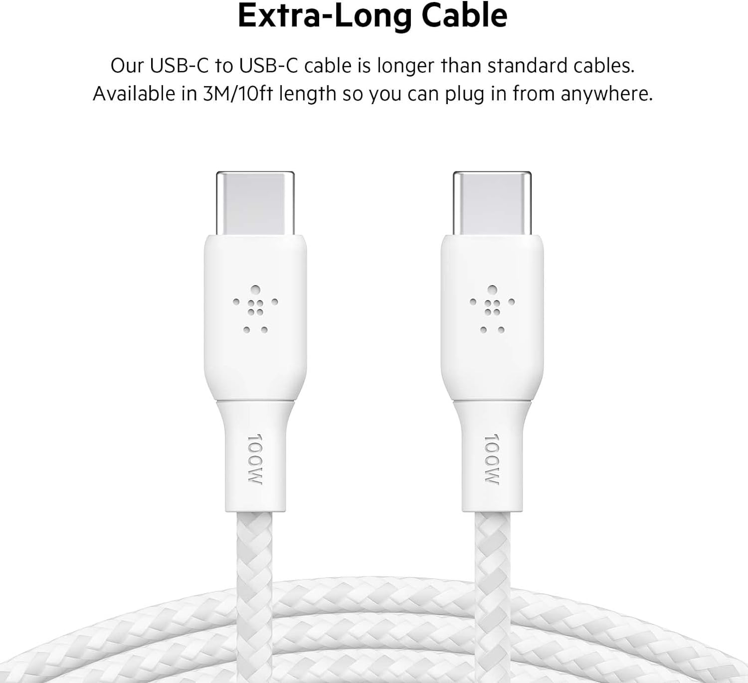 - Belkin USB Type C to Type C Cable 100W Power Delivery 3M - كابل يو اس بي تايب سي إلى تايب سي توصيل طاقة 100 وات