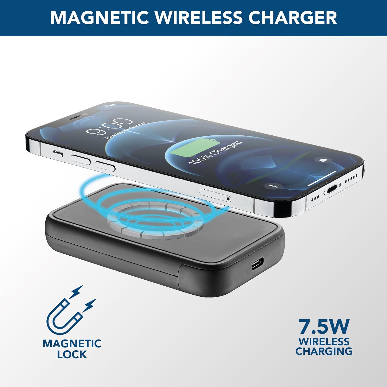 هذا الشاحن المحمول من سيلولارلاين متوافق مع تقنية ماج سيف، وهو الحل النهائي للحفاظ على شحن أجهزتك أثناء التنقل. توافقه مع تقنية ماج سيف يسمح بشحن لاسلكي سريع وفعّال بقوة 7.5 واط، بينما سعة البطارية 5000 مللي أمبير في الساعة تضمن عدة شحنات لأجهزتك. ابق متصلاً أينما كنت مع هذا البنك الطاقة القوي والمتعدد الاستخدامات.