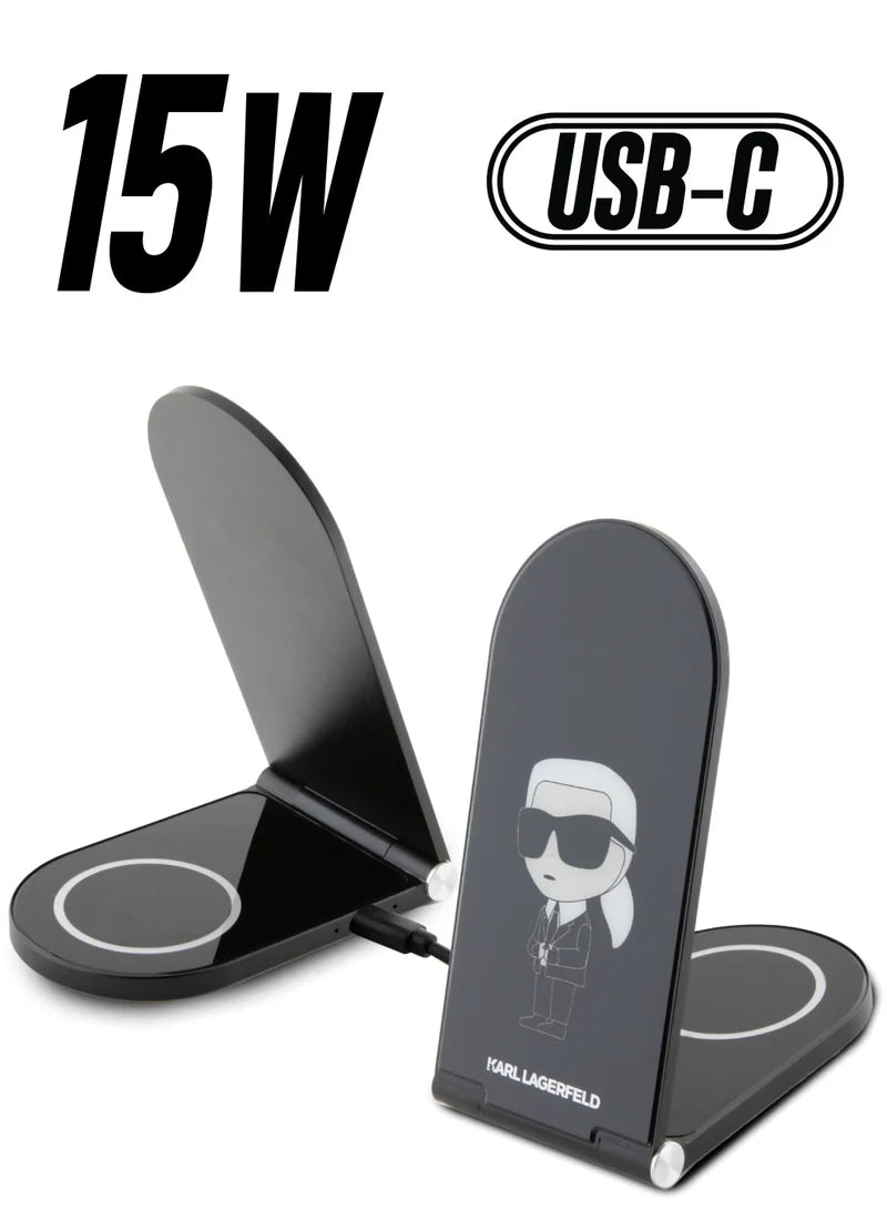 - Karl Lagerfeld 15W Magnetic Desk Charger with Iconic Logo – Black | شاحن مكتب مغناطيسي 15 واط من كارل لاغرفيلد بتصميم شعار ايقوني - اسود
