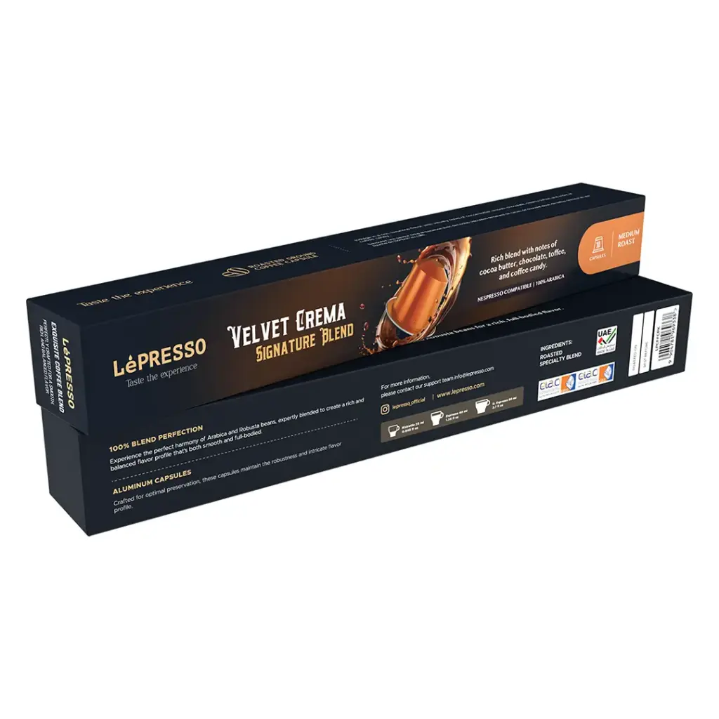 استمتع بتجربة فريدة من القهوة الناعمة والمتوازنة مع كبسولات LePresso Smooth Crema Blend، حيث يجتمع طعم الكريما الغني مع نعومة الملمس. -