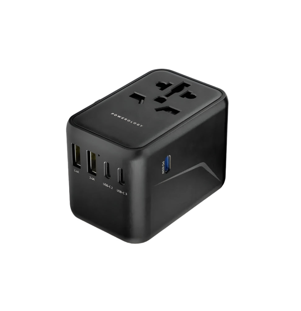 - Powerology 65W PD Universal Travel Adapter with Triple USB-C Ports – أدابتور السفر العالمي باورلوجي بقدرة 65 واط و3 مخارج تايب سي