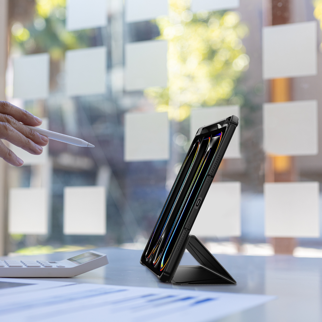 يأتي الكفر مزودًا بفتحة مدمجة مخصصة لقلم Apple Pencil لحفظه بأمان (القلم غير مشمول).
