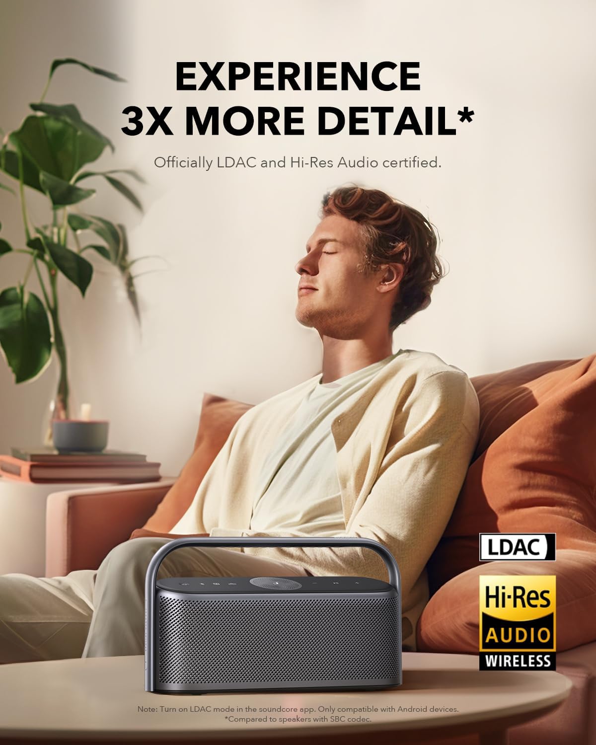 - صوت ملء الغرفة 50 واط: سواء كنت تقيم حفلة أو تستمتع فقط بأغانيك المفضلة، فإن الصوت 50 واط سيملأ أي مساحة بصوت غني وعالي الجودة يجلب الموسيقى إلى الحياة.