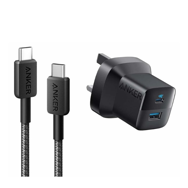 - شاحن أنكر 323 بقدرة 33 واط مع كيبل تايب سي إلى تايب سي بطول 1 متر - اسود | Anker 323 Charger 33W + USB-C to USB-C Cable (3ft) – Black