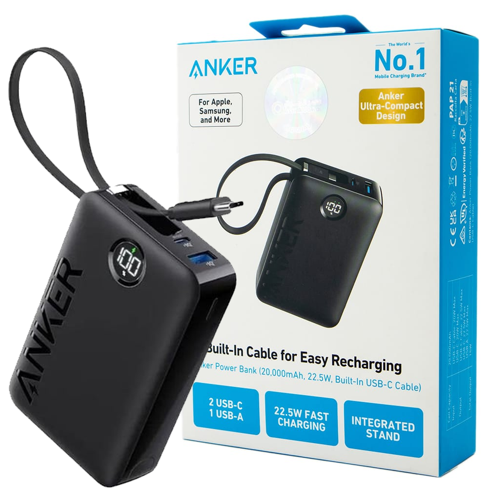 بطارية Anker 335 بسعة 20,000mAh توفر شحنًا سريعًا لأجهزتك بفضل كابل USB-C المدمج بقوة 22.5 واط – الحل المثالي لمن يبحث عن قوة تدوم وأناقة في التنقل.