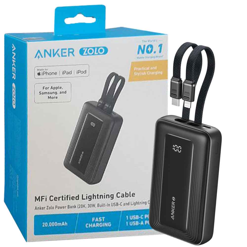 - Anker Zolo Power Bank 20K 30W بكابلات USB-C و Lightning