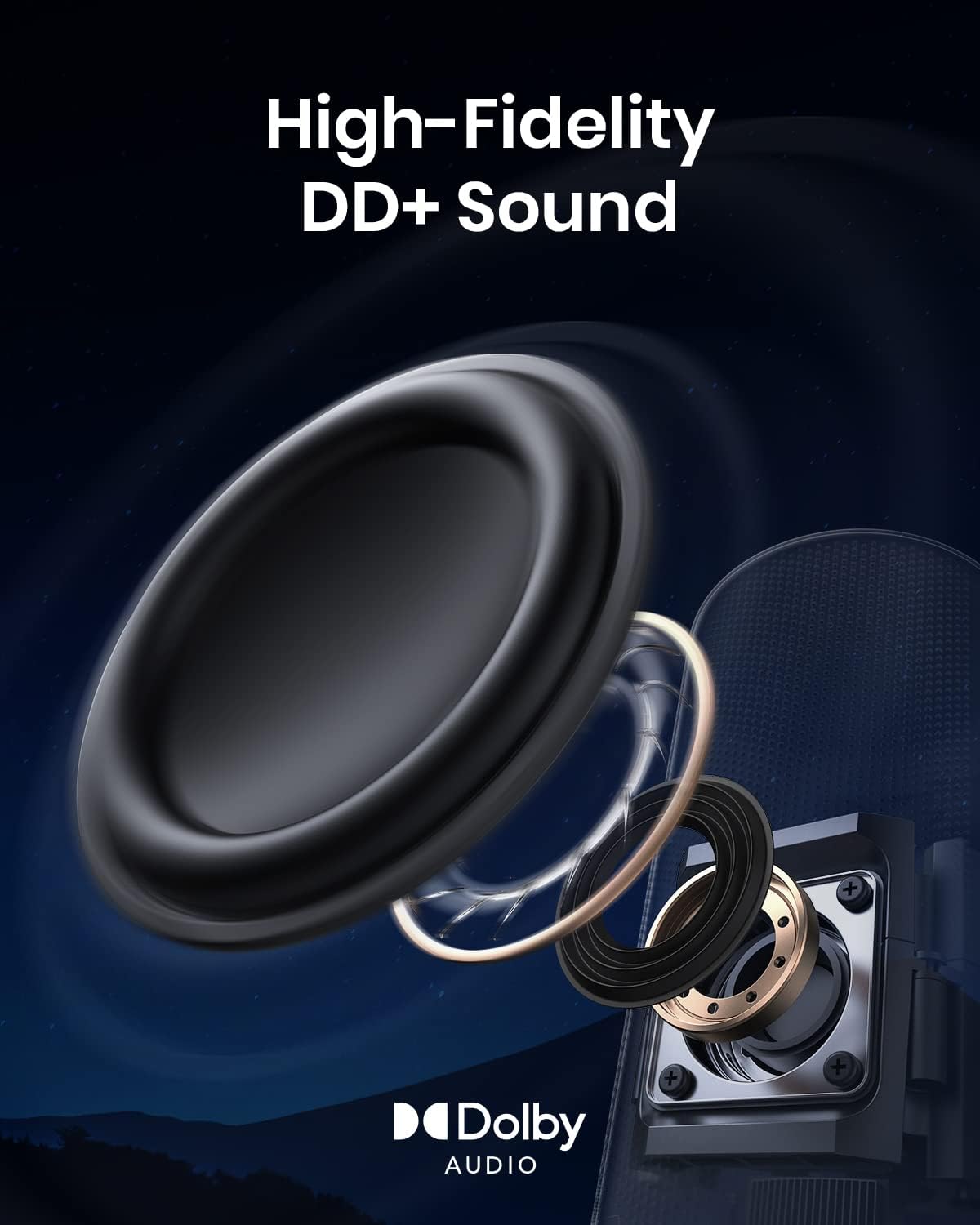- [مكبر صوت Dolby Digital] ارفع مستوى أذنيك مع اشتباك السيوف أو الهمس الحميم مع مكبر الصوت Dolby Digital القوي بقدرة 8 واط - الذي يتميز بصوت واقعي وعالي الدقة على جهاز العرض المحمول.