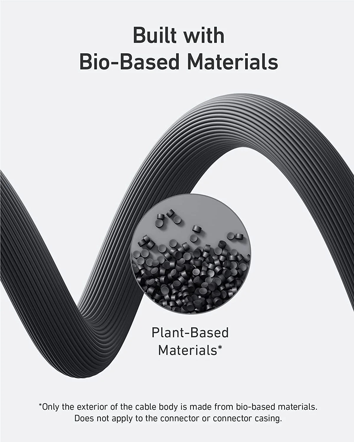 - تصميم صديق للبيئة: تم بناء الجزء الخارجي من جسم الكابل باستخدام مواد حيوية من نباتات مثل الذرة وقصب السكر.