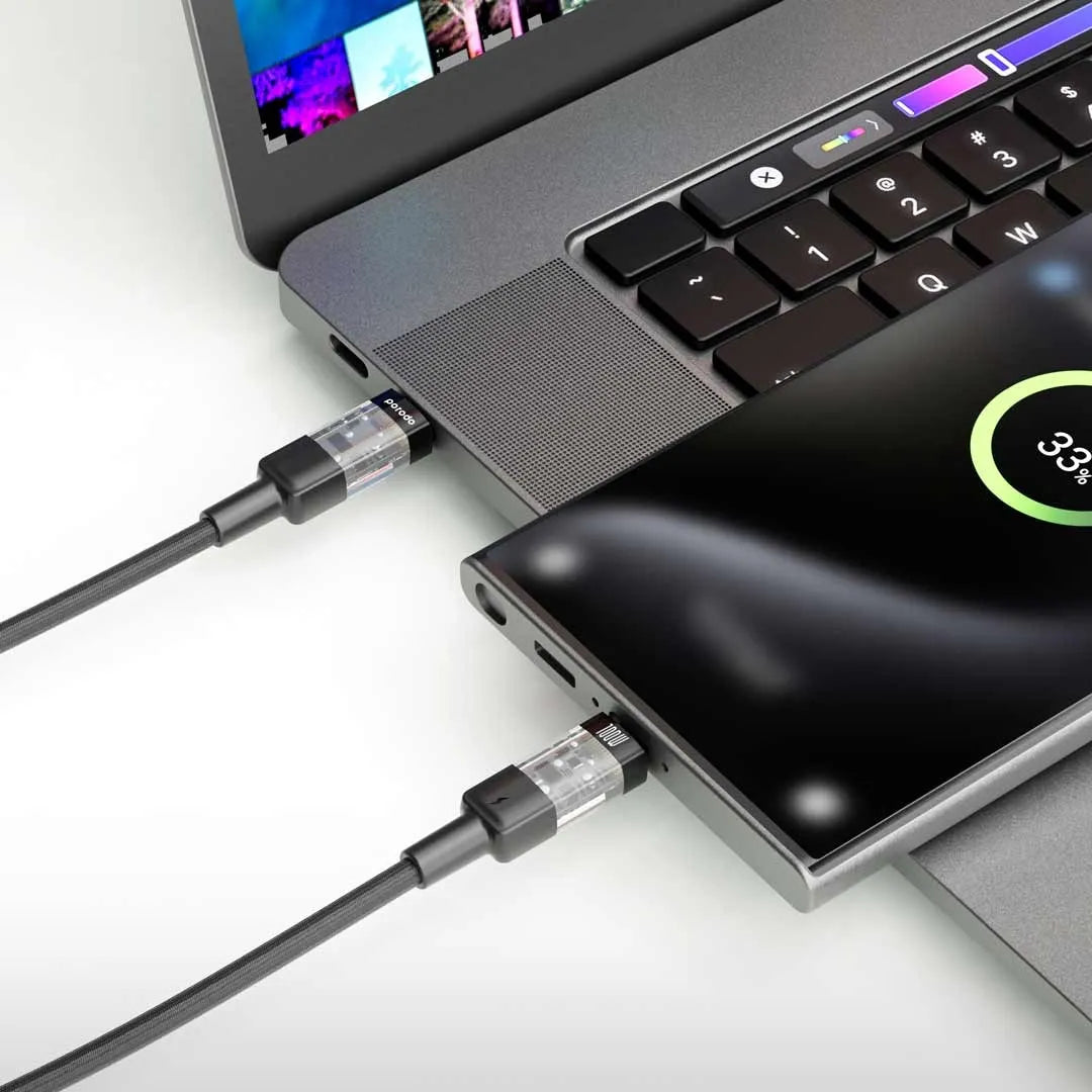 - كيبل بورودو مضفر يو اس بي سي الى يو اس بي سي بطول 1.2 متر وشحن سريع بقدرة 100 واط - اسود | Porodo Braided 100W PD USB-C to USB-C Fast Charging Cable with Transparent Head 1.2M – Black