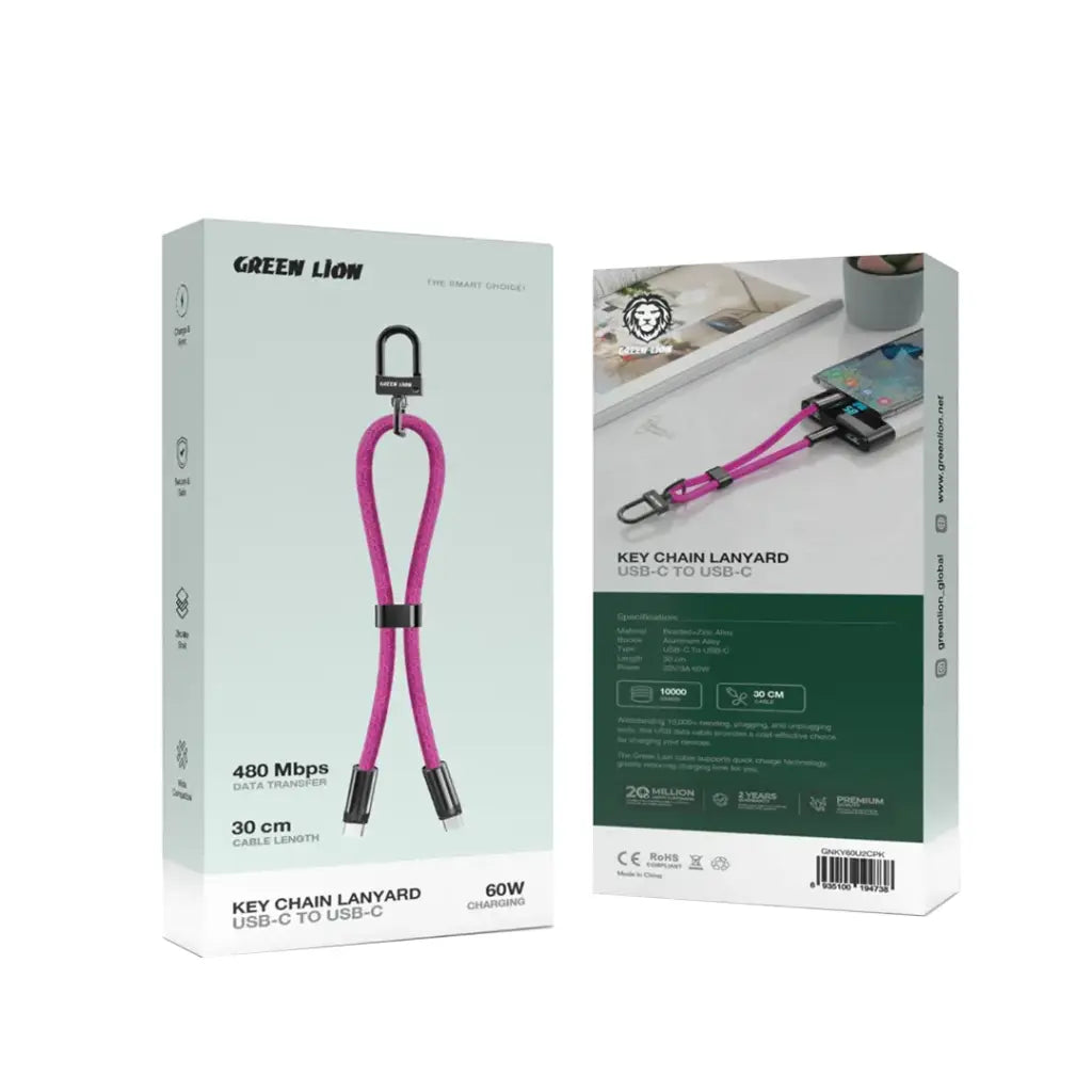 - كيبل جرين لايون على شكل مدالية من يو اس بي سي الى يو اس بي سي بقدرة شحن 60 واط | Green Lion Keychain Lanyard USB-C to USB-C 60W