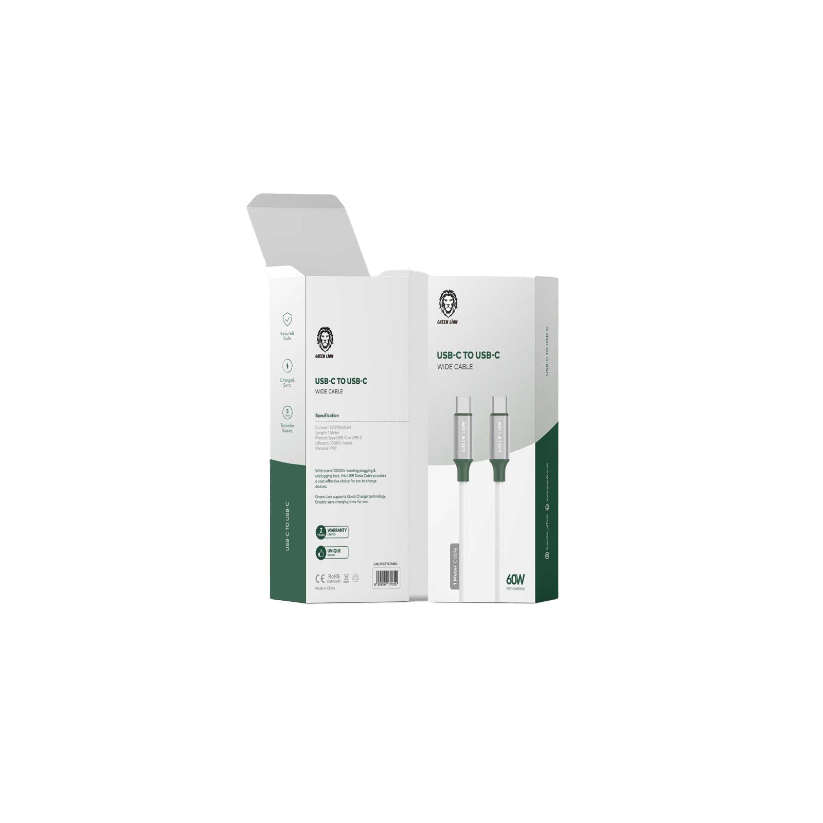 - 1 × كيبل جرين لايون PVC USB-C إلى Type-C Wide بطول 1M PD 60W - أبيض