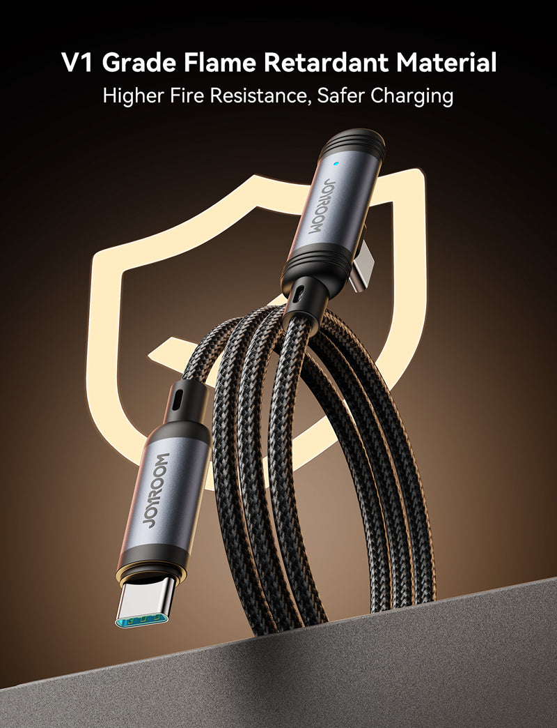- كيبل جويرووم انجوي X سيريس 90 درجة يو اس بي سي الى يو اس بي سي بقدرة شحن 60 واط وطول 1.2 متر | JOYROOM EnjoyX Series 90° Fast Charging Data Cable Type-C to Type-C 60W 1.2M