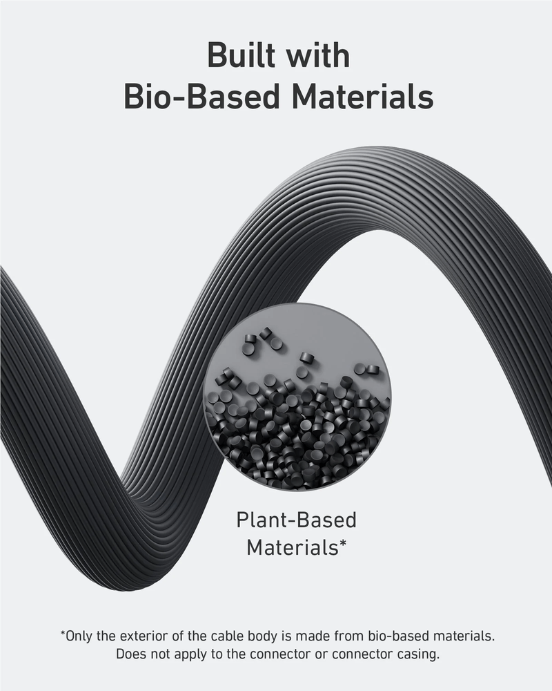 - التصميم القائم على المواد الحيوية: يتم بناء الجزء الخارجي من جسم الكابل باستخدام مواد حيوية من النباتات مثل الذرة وقصب السكر.