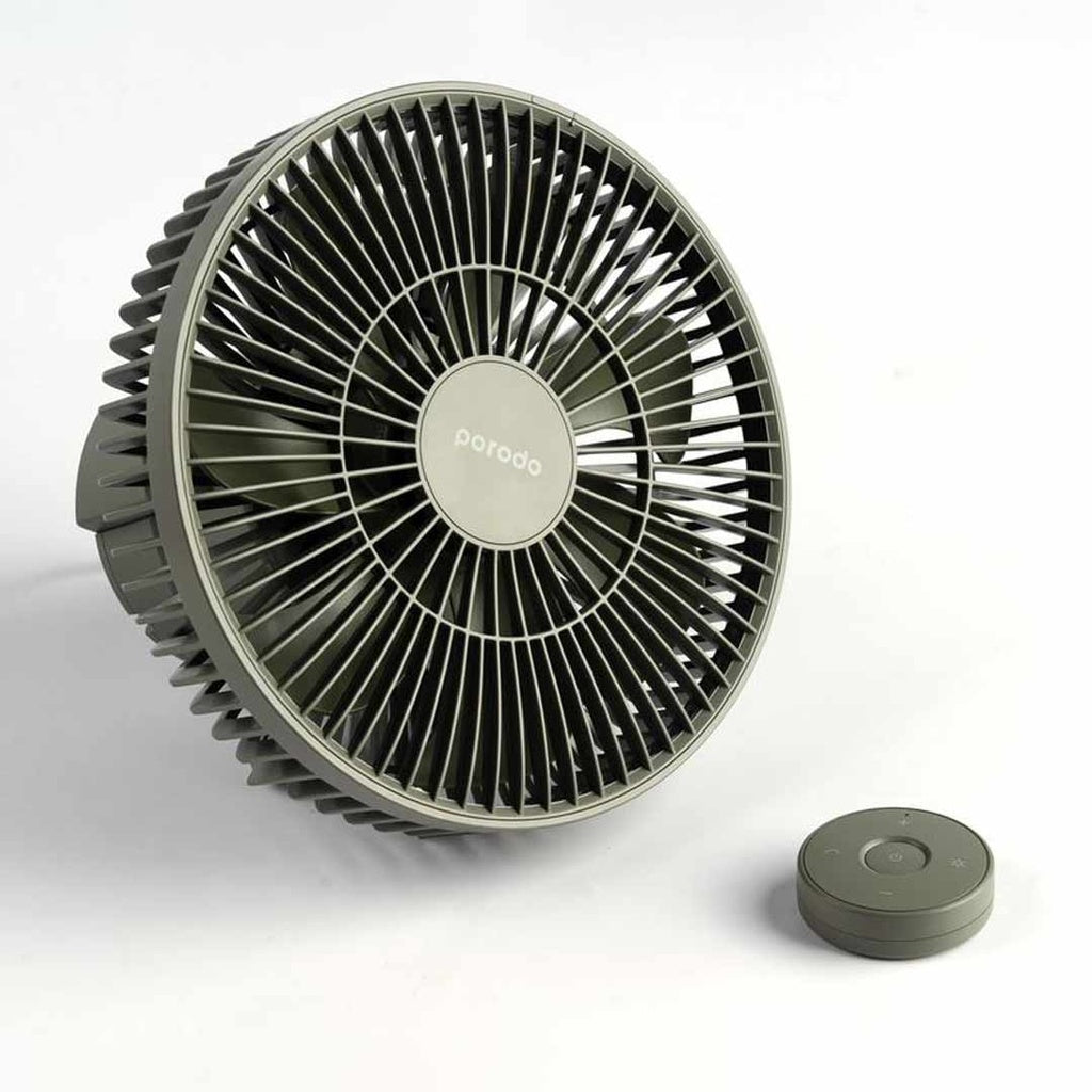 - مروحة تخييم خارجية مع ريموت واضائة LED من بورودو لايف ستايل, بطارية بسعة 10000 مللي امبير - اخضر | Porodo LifeStyle Outdoor Camping Fan with Remote and LED Light 10000mAh - Green