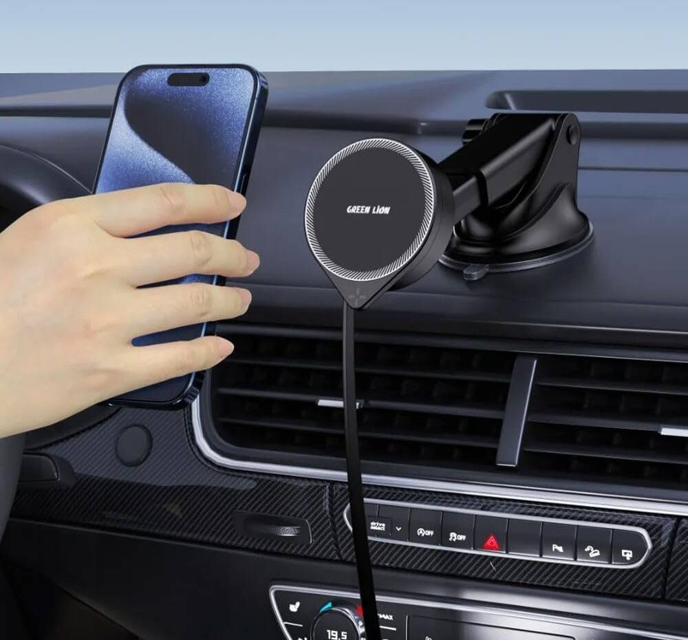 - حامل هاتف جرين لايون GH-17 ماغسيف بقدرة شحن 15 واط - اسود | Green Lion GH-17 MagSafe Holder 15W - Black