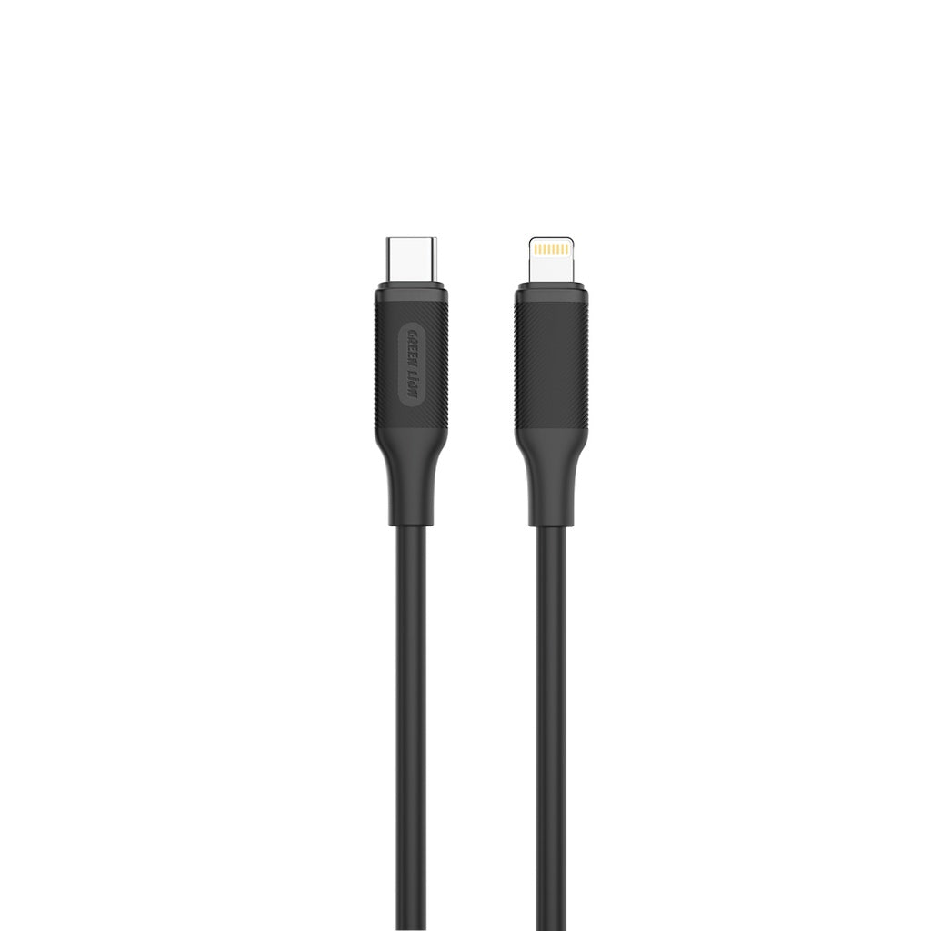 كابلات PVC متعددة: USB-C إلى USB-C وUSB-C إلى Lightning، بطول 1 متر لدعم الشحن السريع للأجهزة المختلفة (5V/3A, 9V/2A, 12V/2A).