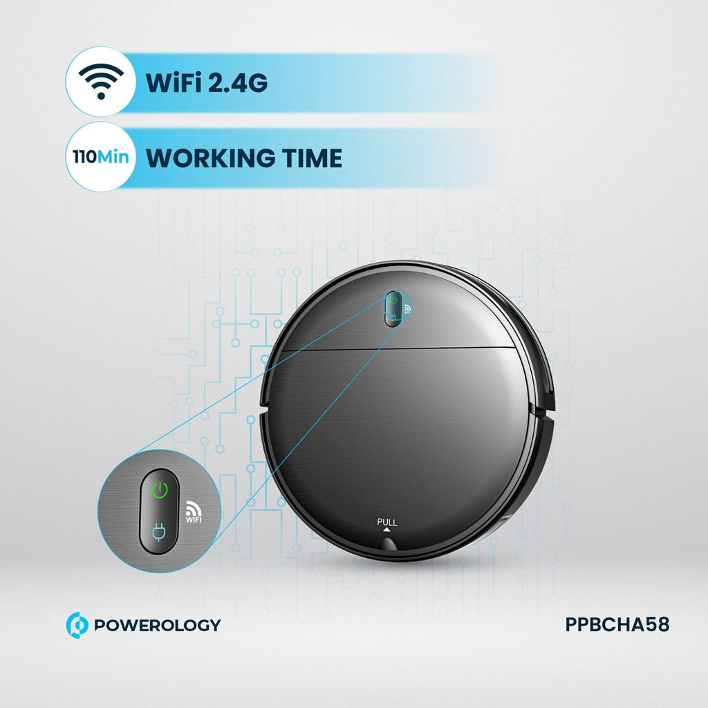 - روبوت ذكي للتنظيف والمسح من باورولوجي, بطارية بسعة 2600 مللي امبير - اسود | Powerology Smart Robo Vacuum & Mop 2600mAh - Black