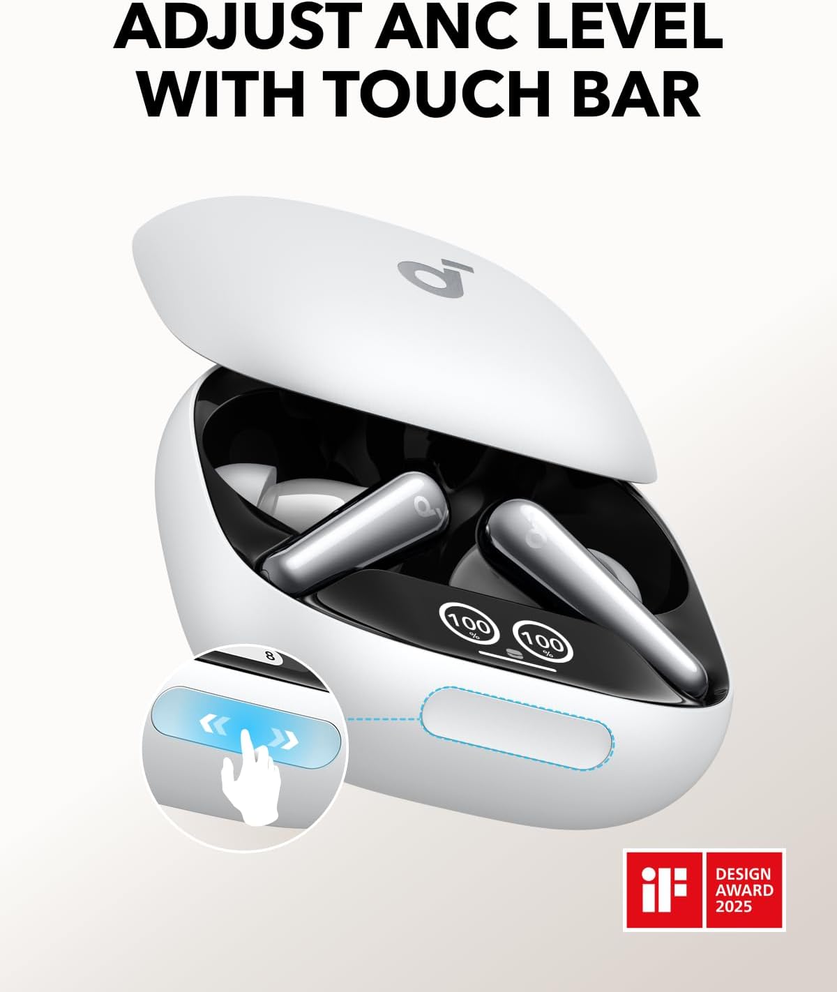- تحكم باللمس من العلبة: اسحب على الشريط للتحكم بمستوى العزل مباشرة.