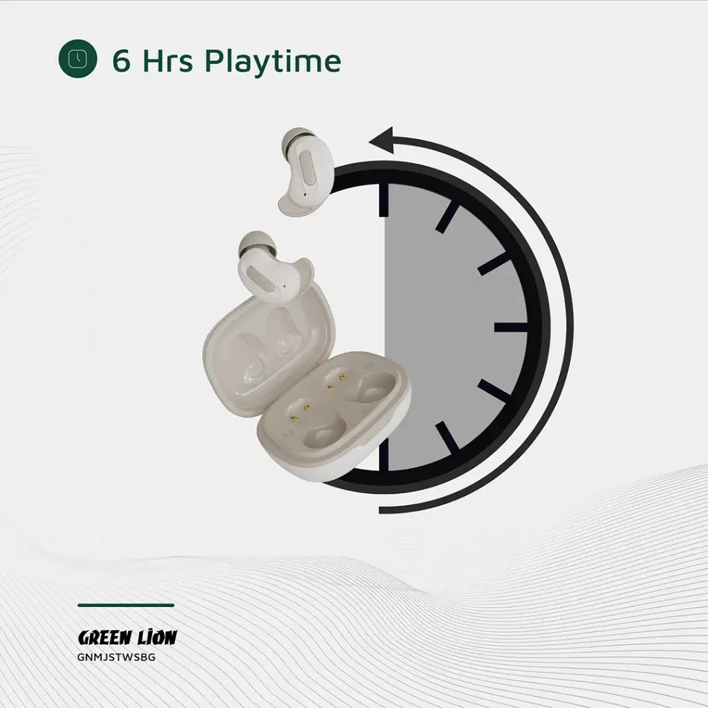 ارتقِ بتجربة الصوت مع سماعات Green Lion Majestic True Wireless Earbuds التي تجمع بين التصميم الأنيق والأداء القوي. مصنوعة من مواد ABS خفيفة ومتانة عالية، تمنحك راحة أثناء الاستخدام مع قوة تحمل ممتازة.