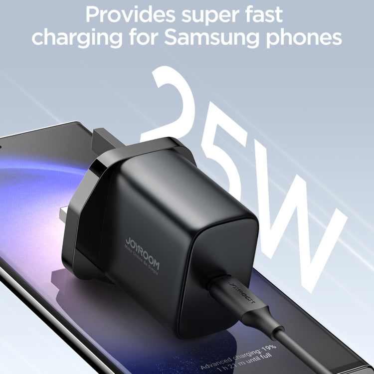 احصل على تجربة شحن سريعة وآمنة مع شاحن JOYROOM JR-TCF11 بقوة 25 واط والمزود بكابل Type-C إلى Type-C بطول 1 متر.