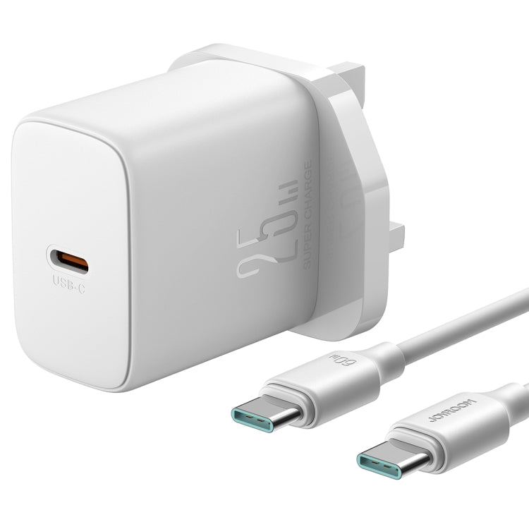 - شاحن جداري جويرووم JR-TCF11 بقدرة شحن 25 واط مع كيبل تايب سي الى تايب سي بطول 1 متر - ابيض | JOYROOM JR-TCF11 25W Fast USB-C Charger & Type-C Cable - White