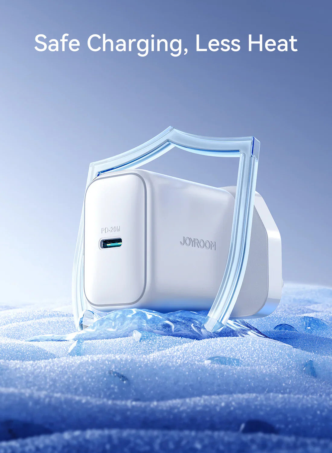 اشحن أجهزتك بسرعة وكفاءة باستخدام شاحن Joyroom JR-TCF20 بقدرة 20 واط PD، المصمم خصيصًا لتوفير أداء فائق وحماية متقدمة.