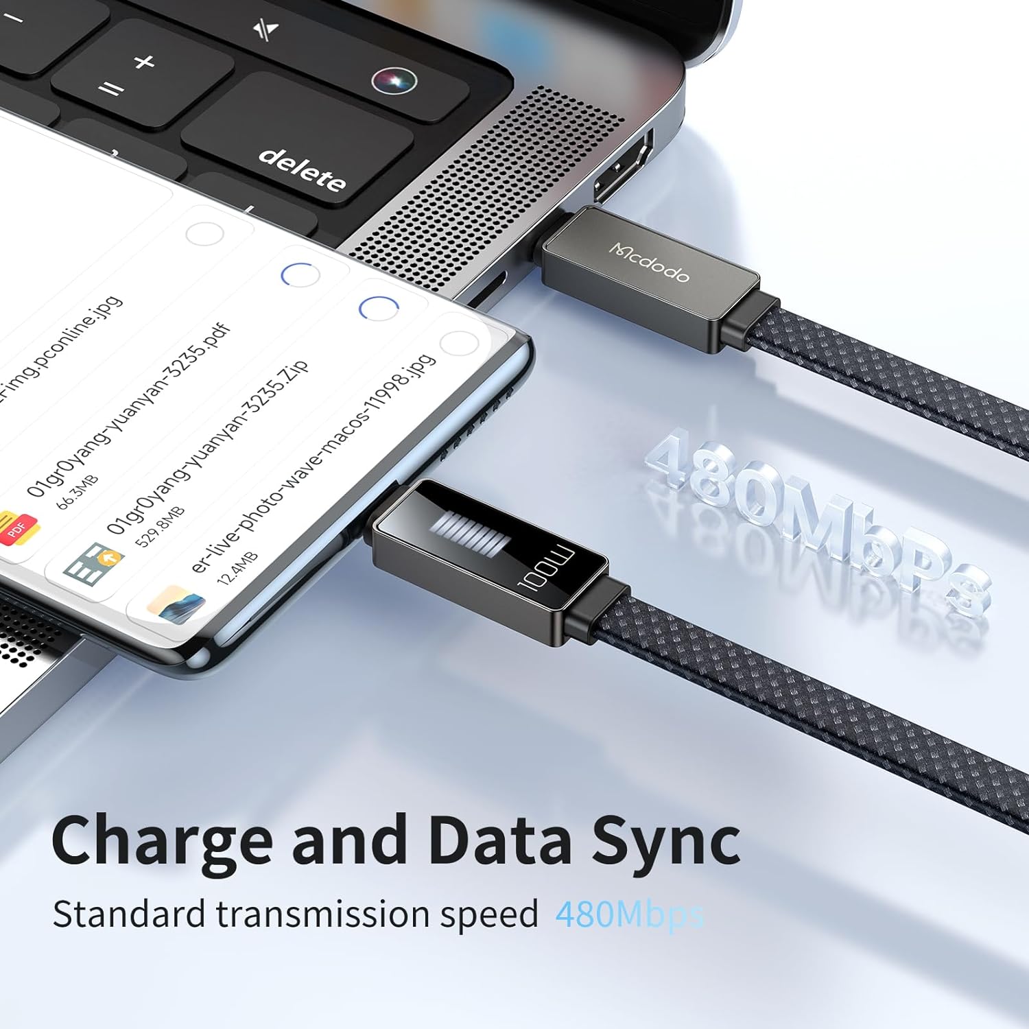 - ماB C Cableكدودو كيبل يو اس بي سي شاشة عرض ايقاع جديدة من يو اس بي سي الى يو اس بي سي كيبل شحن سريع 100 واط 4 قدم 5 امبير - Mcdodo US New Rhythm Screen Display USB C to USB C Cable 100W 4ft 5A Fast Charging