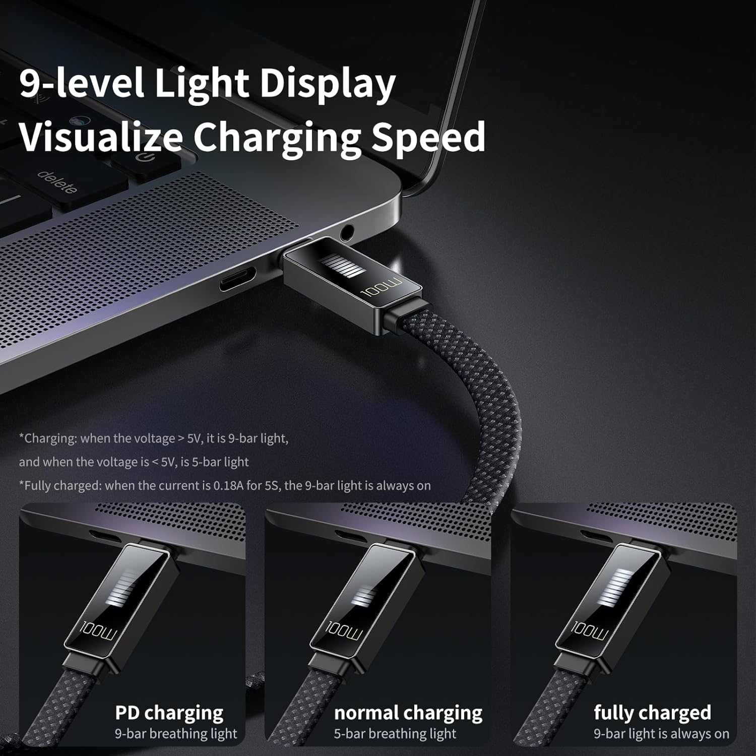 - 【شاشة عرض إيقاعية】: ابتكار تصميم جديد من ماكدودو. تصور سرعة الشحن USB C إلى USB C، ويمكنك رؤية سرعة الشحن مباشرة. كل سرعة شحن تقفز على الشاشة مثل الإيقاع. تعتمد على إطار من خليط الزنك وشاشة ضيقة للغاية وتصميم بصري كامل الشاشة، تحتوي شاشة العرض على 9 أشرطة إضاءة، والتي تظهر بشكل حدسي سرعة الشحن، وهو أمر زخرفي للغاية. كابل USB C بارد بارد كابل USB C.