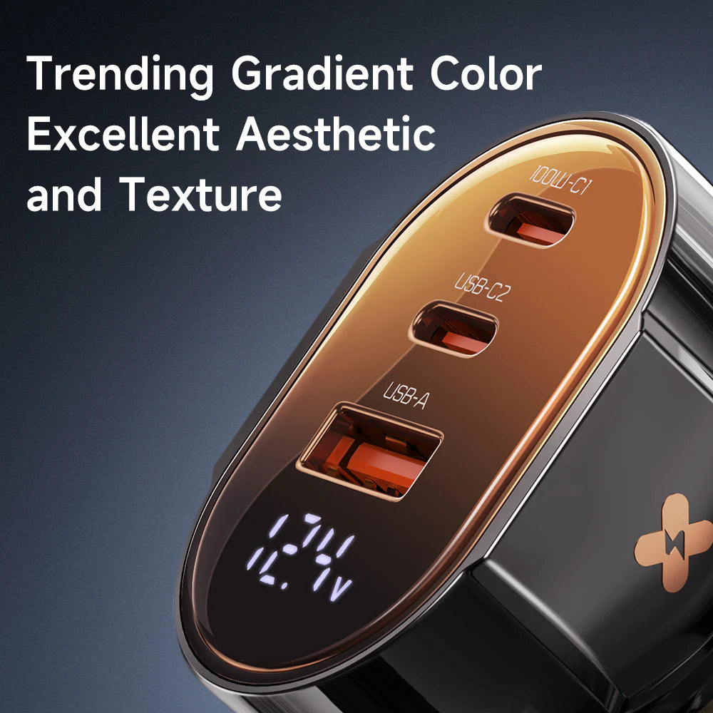 - Mcdodo 100W Dual USB-C +USB-A Digital Display PD Car Charger - شاحن سيارة سريع الشحن بمنفذين يو اس بي سي ومنفذ يو اس بي أ من مكدودو