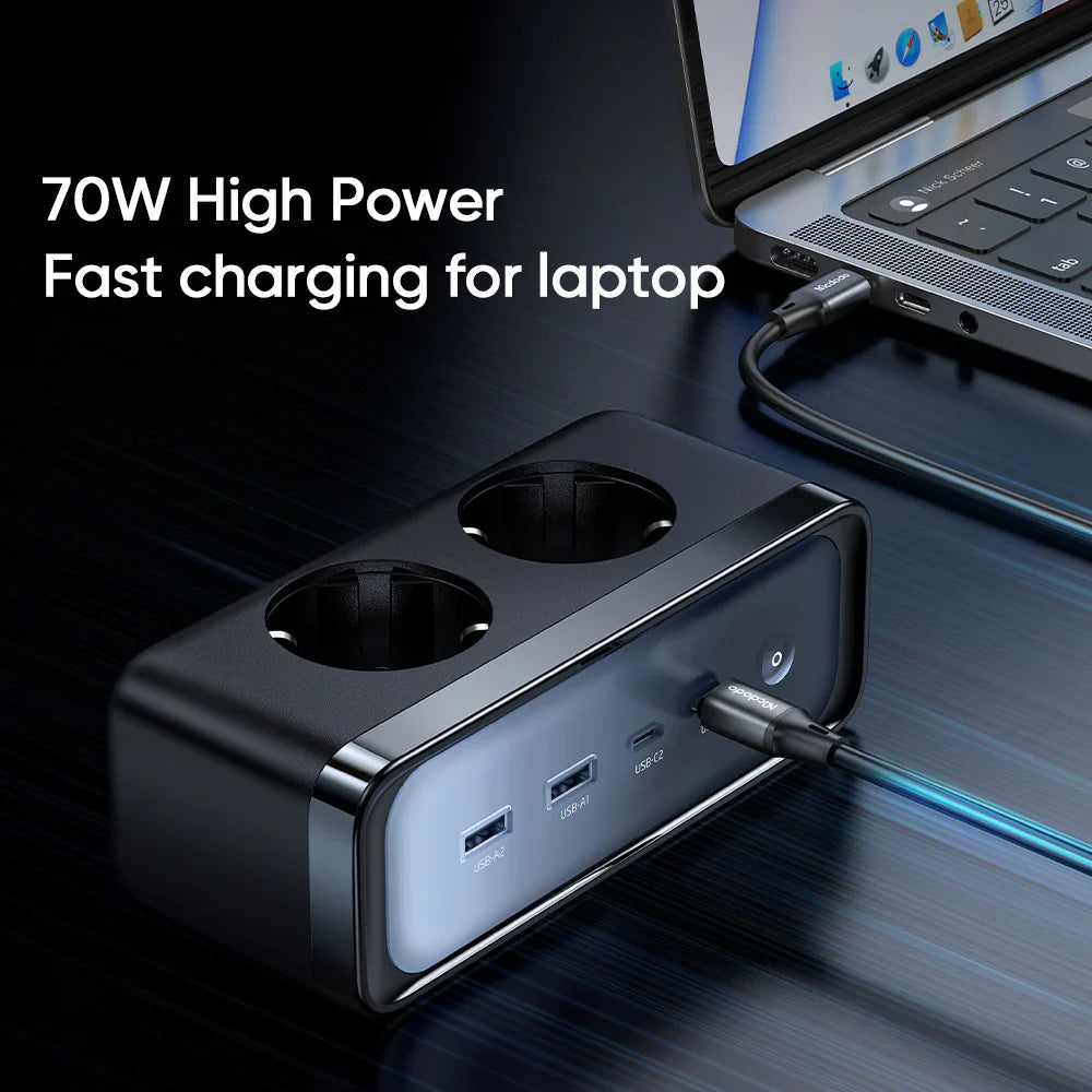 - Mcdodo 6 in 1 70W GaN Lightning Protection Power Strip - شاحن ماكدودو 6 في 1 70 وات للحماية من الصواعق قابس الاتحاد الأوروبي