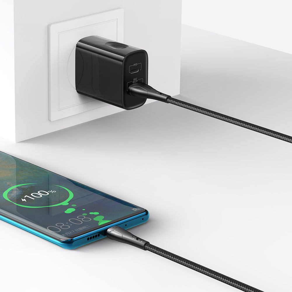 - كابل مضفر من سلسلة Mamba من النوع C CA7461 QC4.0 كابل بيانات شحن سريع يستخدم مع شاحن حائط QC لتحقيق شحن سريع للهاتف المحمول،