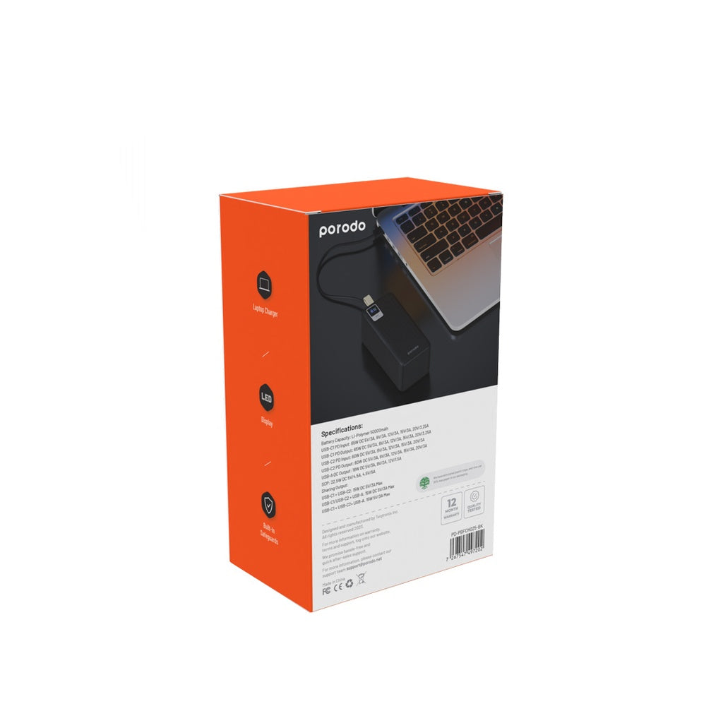 - باور بانك بورودو بسعة 50000 مللي امبير مع شحن سريع بقدرة 65 واط - اسود | Porodo Compact Power Bank 50000mAh PD 65W - Black.